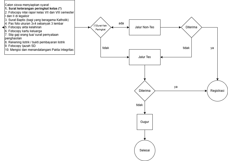 - Untuk pendaftar jalur beasiswa dan jalur tes mengikuti tes di SMA Sedes Sapientiae Jambu pada tanggal yang sudah ditentukan